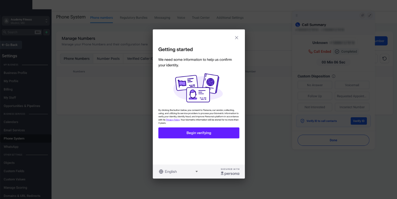 • After your first call, you'll be prompted to complete a one-time ID check using a government ID and selfie. This is required to place calls to contacts